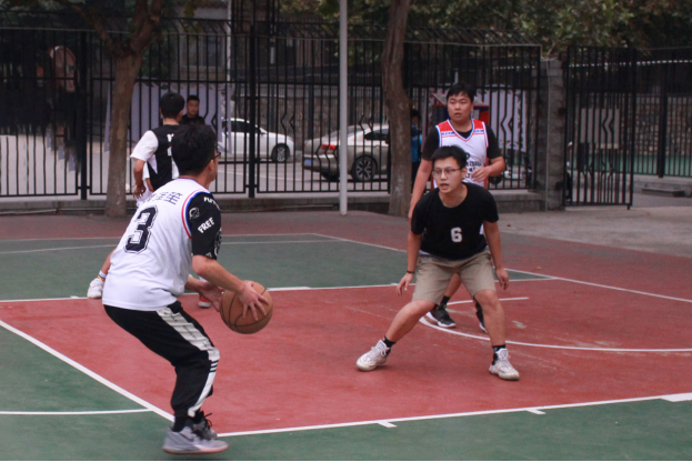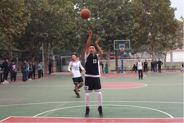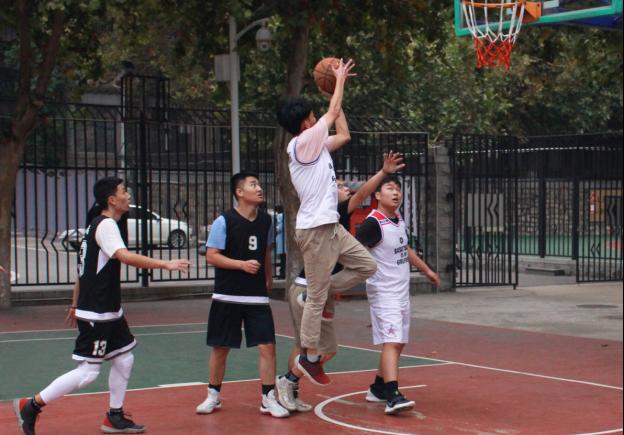 在篮球场开展篮球友谊赛。安全工程、采矿工程专业18级同学参赛。