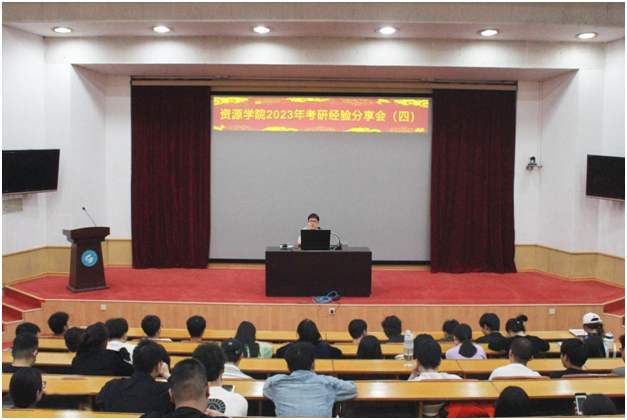 在4号楼报告厅开展“交流考研经验 助力资源研途”考研经验分享会第4期。张伟、曹晓虎两位2023届考研上岸优秀毕业生主讲,91热爆2024届全体毕业生参加。