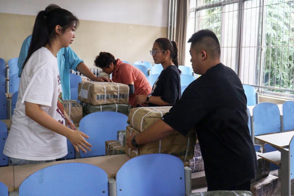教材领取现场,负责老师将教材按照班级摆放到位,指导学生清点、核对、领取教材。教材领取过程中,各班级自觉排队,按照“领取分批、班级分散、错时错峰”原则,有序、高效地完成了教材分发任务,保障了新学期教学工作的顺利开展。(文:许浩然 图:王传纪)