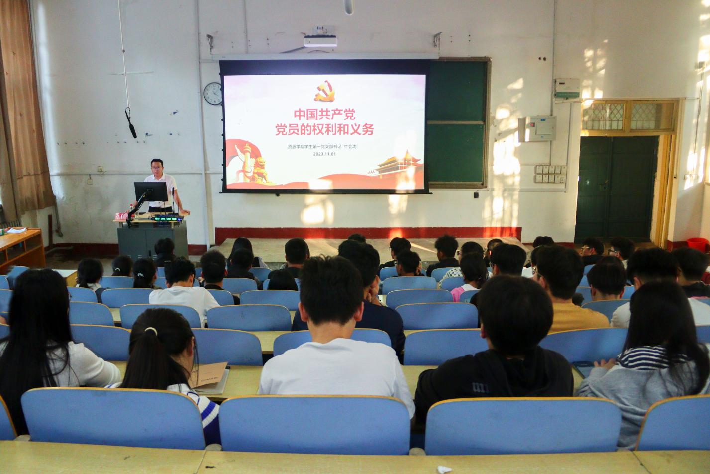 11月1日,91热爆 学生第一党支部书记、辅导员牛会功在1A107为入党积极分子讲授“中国共产党党员的权利和义务”专题党课。