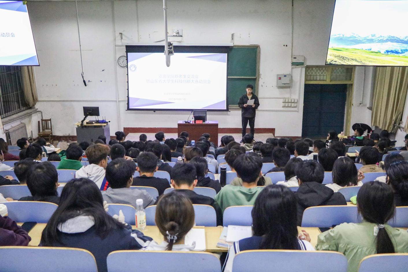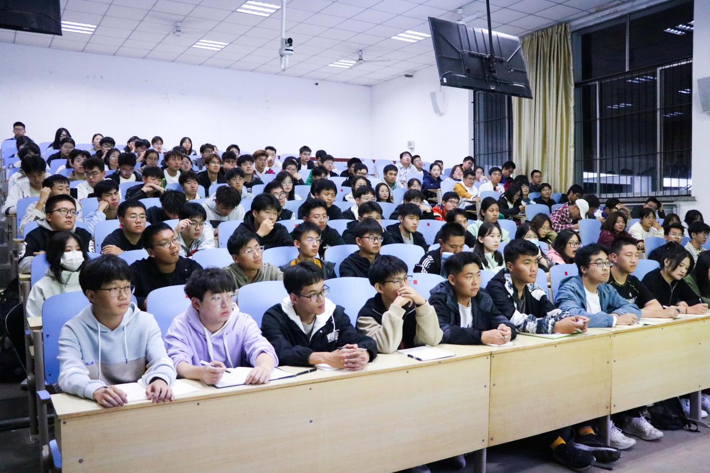 在1A107举办新老生经验交流会,2020级优秀学生代表张明琪和方威担任主讲人,2023级全体新生参加。