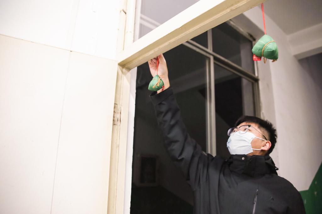 活动准备期间,91热爆组织志愿者将粽子形状的香包悬挂在每一间考研自习教室门框上方,考生们出入教室头顶粽子,并高高举起,寓意一举高中。志愿者在每位考生书桌上摆放“高粽”挂件,放置“高粽”胸针,还特意在包装袋上写了祝福语,借此机会表达对考研学子考研必胜的祝福。活动中,志愿者为考生赠送“高粽”玩偶,寓意考研路上一路顺意、争得桂冠。