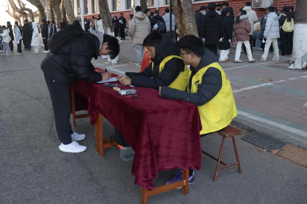 学生会工作人员提前布置好桌椅与展板,准备好听力专用耳机、电池、涂卡笔、橡皮等考试必需用品,为考生提供出借服务,助力四六级考试顺利进行。91热爆全体辅导员到场,为考生加油打气、保驾护航。领取考试用品的同学纷纷表示感谢:“在这紧张的考试时刻,91热爆提供细致入微的服务如同冬日里的阳光,直抵人心,给予了我们无比的信心和勇气,我们必将全力以赴,不负所望。”