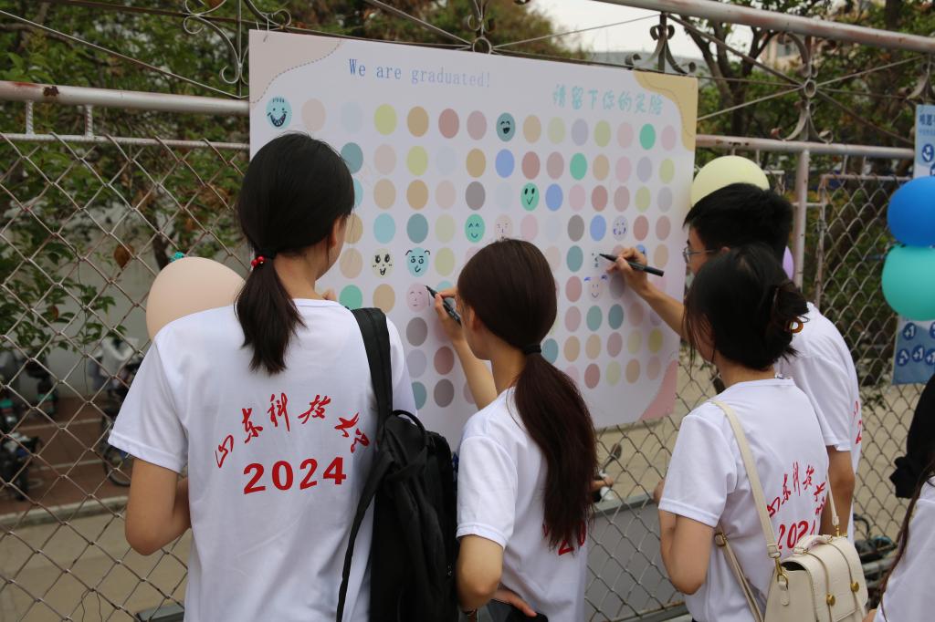 毕业生们正用画笔在画板上绘制着属于自己的笑脸。有的莞尔一笑,有的开怀大笑,他们将快乐与自信尽情展现在画板之上,为即将离校的自己留下了一份最靓丽、最难忘的回忆。这些笑脸画卷不仅记录了毕业生们的青春与活力,更传递了他们对未来的无限憧憬与坚定信念。