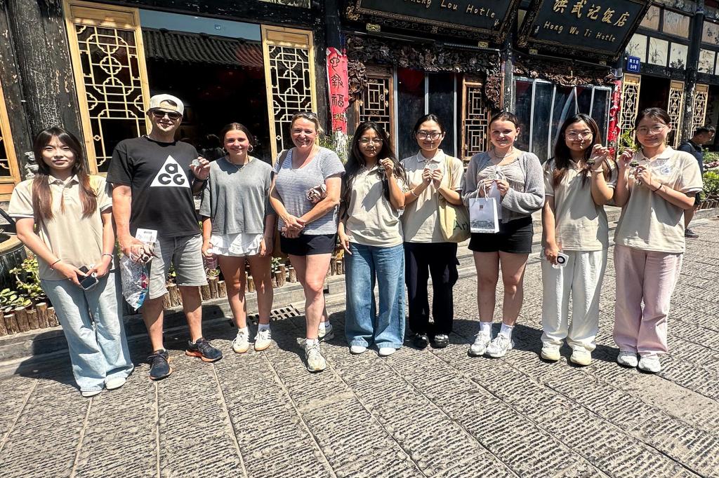 在平遥深处的唐都推光漆艺博物馆,团队成员系统了解了推光漆器的发展历程,并深入学习其严谨繁复的制作工序,体会这一非遗技艺的精湛与智慧。随后,队员们主动担当起非遗文化传播者的角色,热情地向游客和居民展示精美文创产品,介绍推光漆器的艺术价值与文化内涵,并征集关于漆器传承与创新的建议。不少外国友人对漆器工艺赞叹不已,表示希望这块中华瑰宝能够走向世界,让更多人领略其独特魅力。