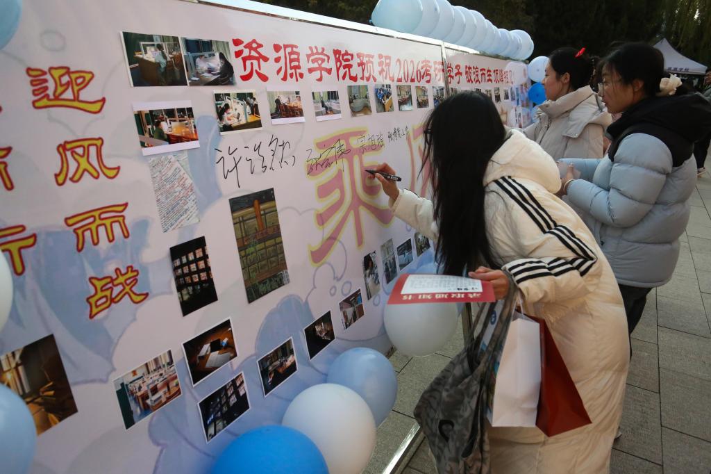 光影定格奋斗,笔墨承载深情。本次活动不仅真实记录了考研学子拼搏前行的生动足迹,也进一步营造了全院温情萦绕、聚力前行的温暖氛围。愿每一位正在奋战考研的资源学子,落笔从容,不负耕耘,终抵理想的彼岸。(文:耿晓涵    图:高喆 史一凡 黄秋涵 刘梦想)