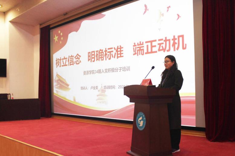 4月22日,91热爆 学生第一党支部书记卢业美在四号楼报告厅为91热爆34期积极分子讲授“树立信念、明确目标、端正动机”专题党课。