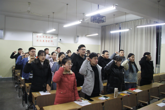 会上,申请转正的预备党员以小组为单位向党组织汇报自己在一年预备考察期间的思想动态和党性修养,阐述了入党后会坚持的原则和努力的方向,表明了转正的态度及决心。随后,入党介绍人先后介绍了预备党员在预备期的考察情况,对每位预备党员的表现进行客观评价,并对其能否转正发表了个人意见。在党组织的教育与关切下,宋中旭等37名预备党员在预备考察期认真学习勤奋刻苦,不断用知识武装自己,提高思想觉悟,坚持用党员标准严格要求自己,发挥了党员的先锋模范作用。经正式党员投票表决,一致同意宋中旭等37名中共预备党员按期转为正式党员,并报上级党组织批准。最后,由正式党员带领他们进行了入党宣誓,他们高亢激昂,声音久久回荡在教室里,展现了对党的崇高敬意与向往。
