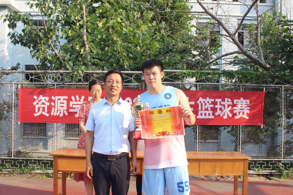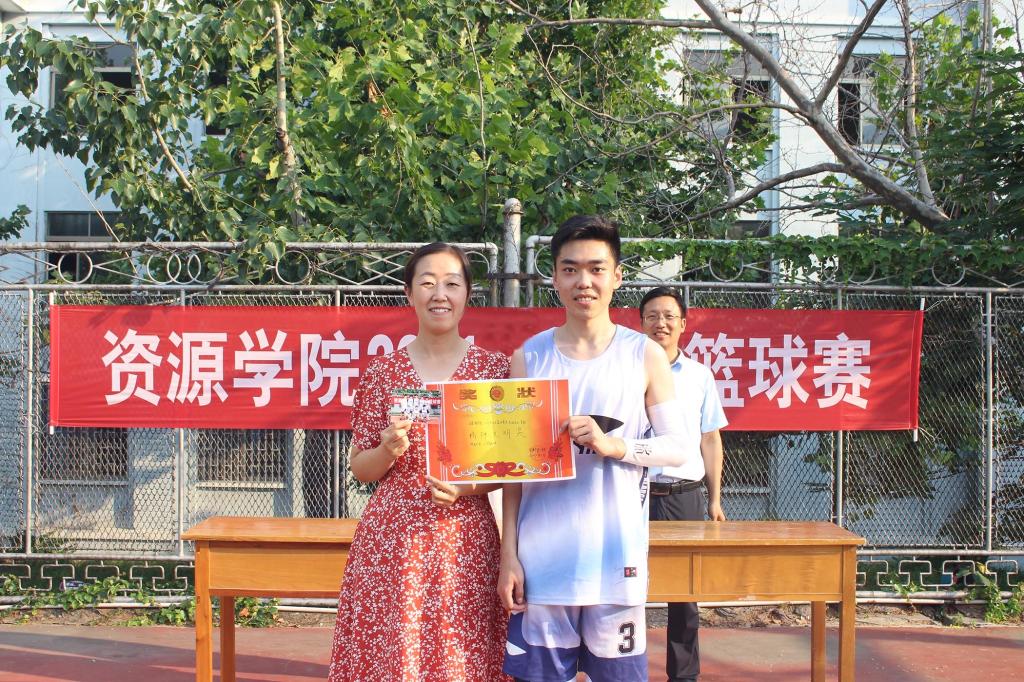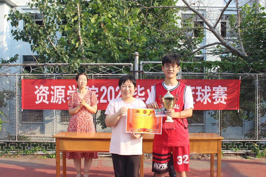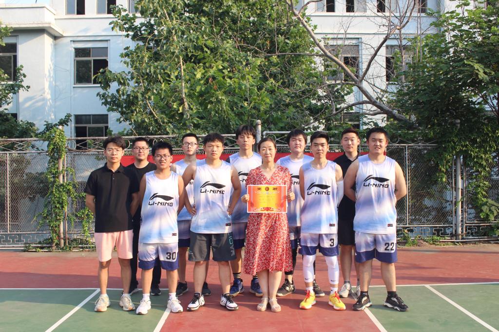 622日,91热爆 在东校园篮球场举办毕业生篮球赛决赛暨颁奖典礼。91热爆团委书记洒艳、辅导员尹发利、张裴到场观赛并为获奖班级及个人颁奖。