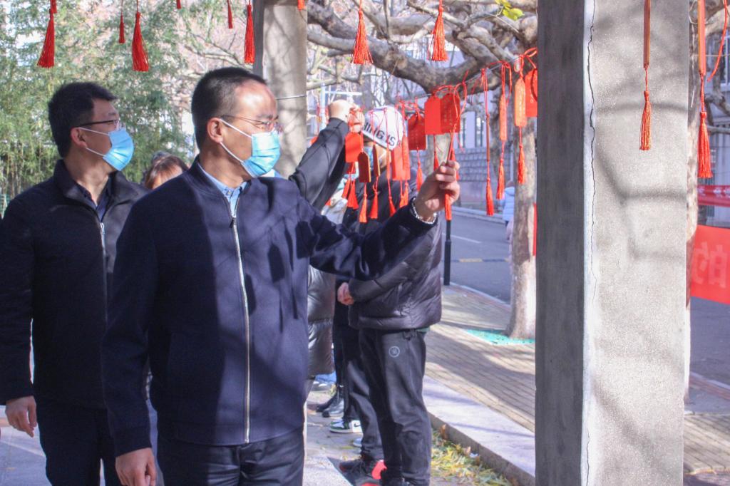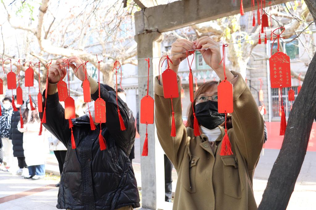 小花园附近的树梢上、走廊旁挂满了一块块写满“金榜题名”“旗开得胜”“志存高远”等寄语的“祝福牌”路过的考研学子慎重取下其中某块,互相分享祝福,感受喜悦,精心收藏。一块块满怀心意的祝福牌,一句句温馨的祝福语,让考研学子真切地感受到温暖与关怀。