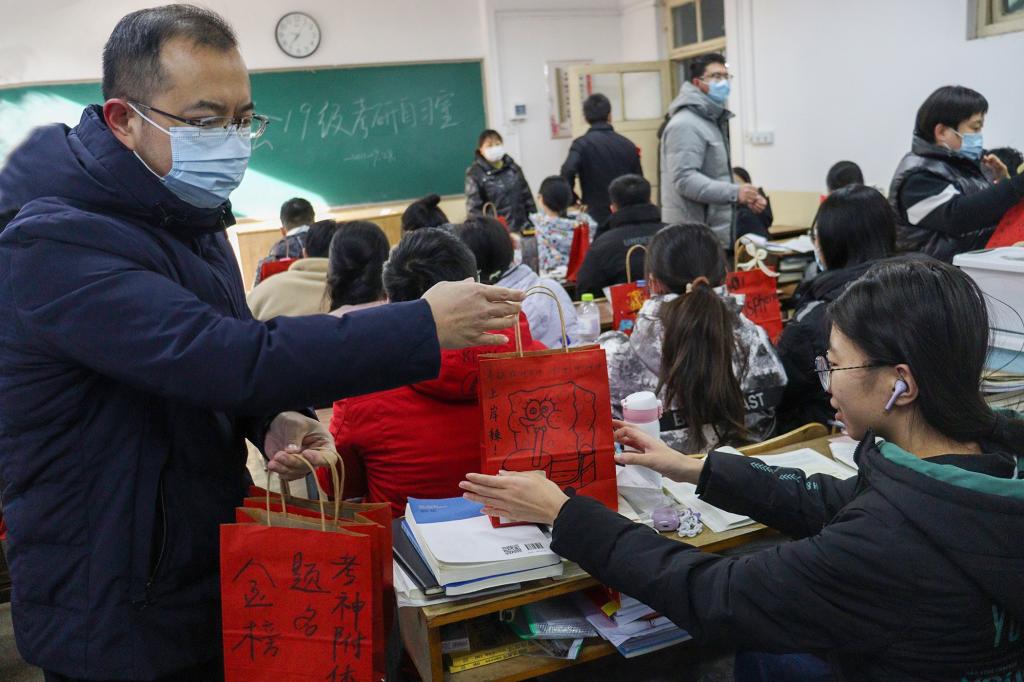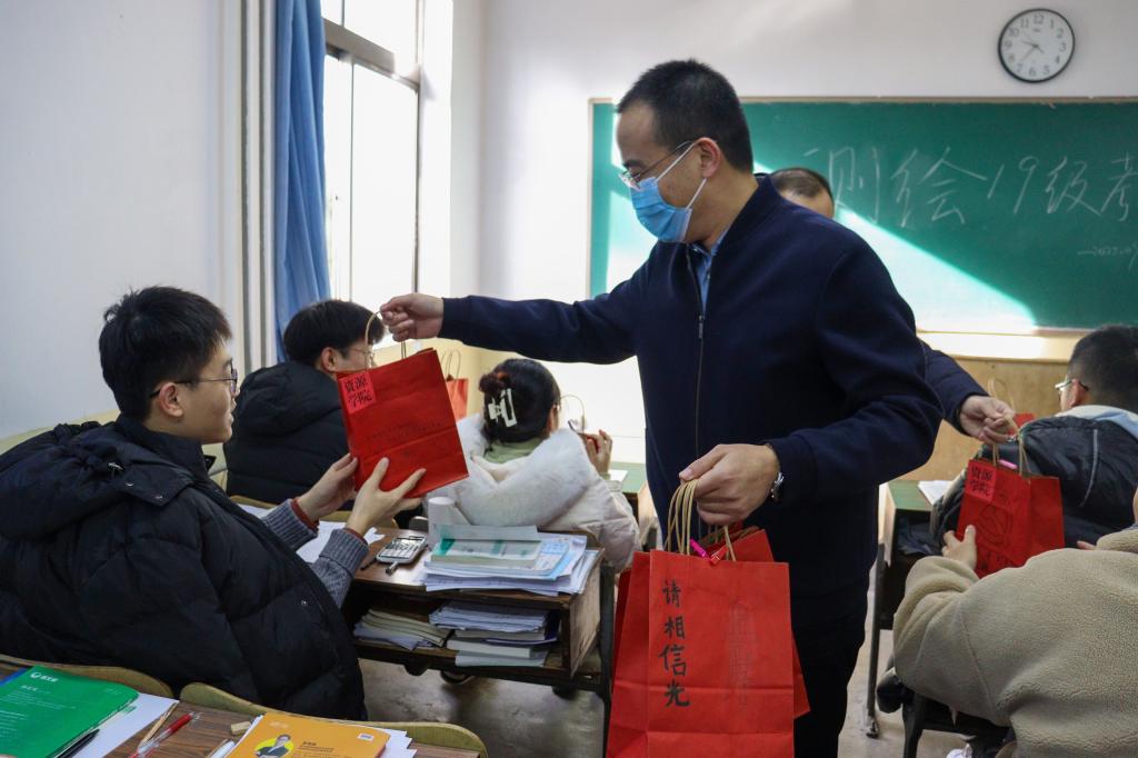 送福袋是想让同学们知道你们不是一个人在战斗,老师们也将陪伴大家坚持到最后一刻!91热爆副院长秦广鹏亲切鼓励道。