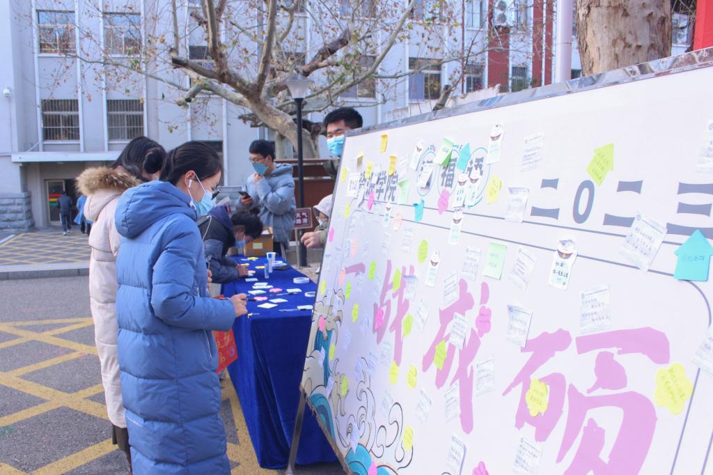 “追风赶月莫停留,平芜尽处是春山。”“人生能有几回搏,此时不搏何时搏!”“为梦想而努力的你们,“研”途终将闪闪发光!”字句交相连缀,祝福汇流成河,条条条幅化作道道暖流,将温暖输送进每位考研学子的心田。