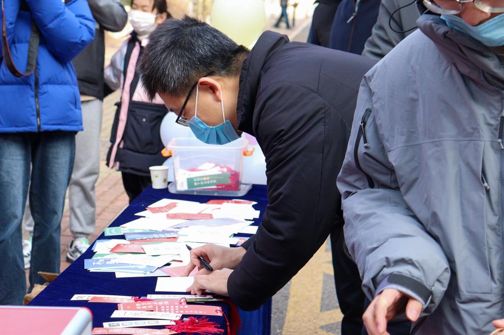 “没有横空出世的幸运,只有不为人知的努力。看着学长学姐们在心无旁骛地为自己的目标院校而拼搏奋斗,我深受感动。设计这个福袋,也希望学长学姐能够锦鲤附体,一战成硕!”当谈到为身边考研同学送祝福的初衷时,学生会主席团成员王一说道。