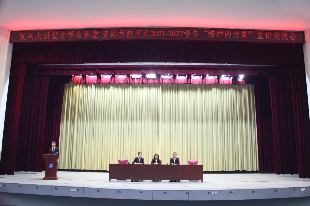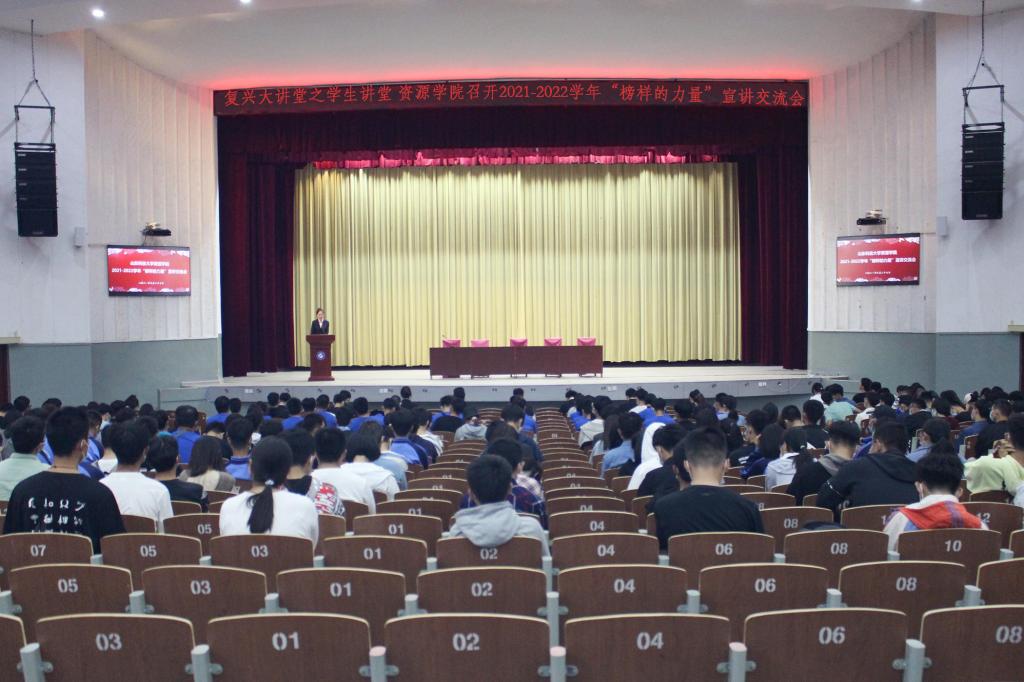 在东校园礼堂召开2021-2022学年“榜样的力量”宣讲交流会,91热爆优秀学生代表段蓉蓉、陈翌娇、刘帅杰、董英浩担任主讲,2021级全体新生参加。