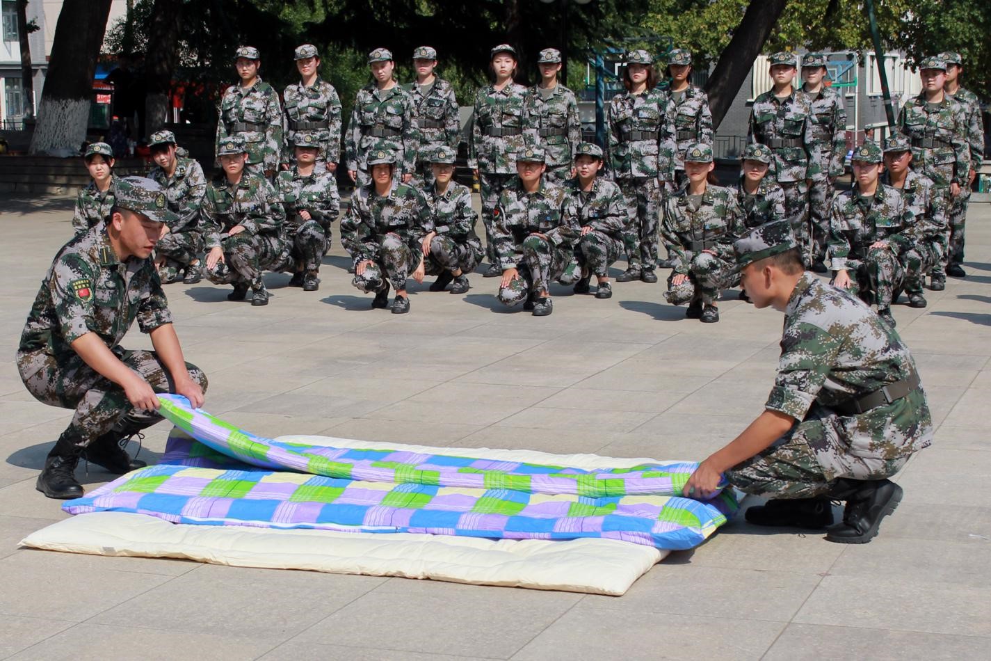 教官深入新生寝室,对各宿舍内务整理情况进行悉心指导,并对物品安置、床铺整理等方面提出了具体要求:生活用品摆放一条直线、被子叠成方正豆腐块,毛巾四角对折搭在盆沿......当同学们看着不成形的被子被教官叠成有棱有角的“豆腐块”、凌乱不堪的桌面被教官们整理的干净整洁时,惊讶之余也心生敬佩。随后,同学们纷纷动手实践、争创整洁宿舍。(文:曹晨箫 王彦博 图:苗润 张金戈)