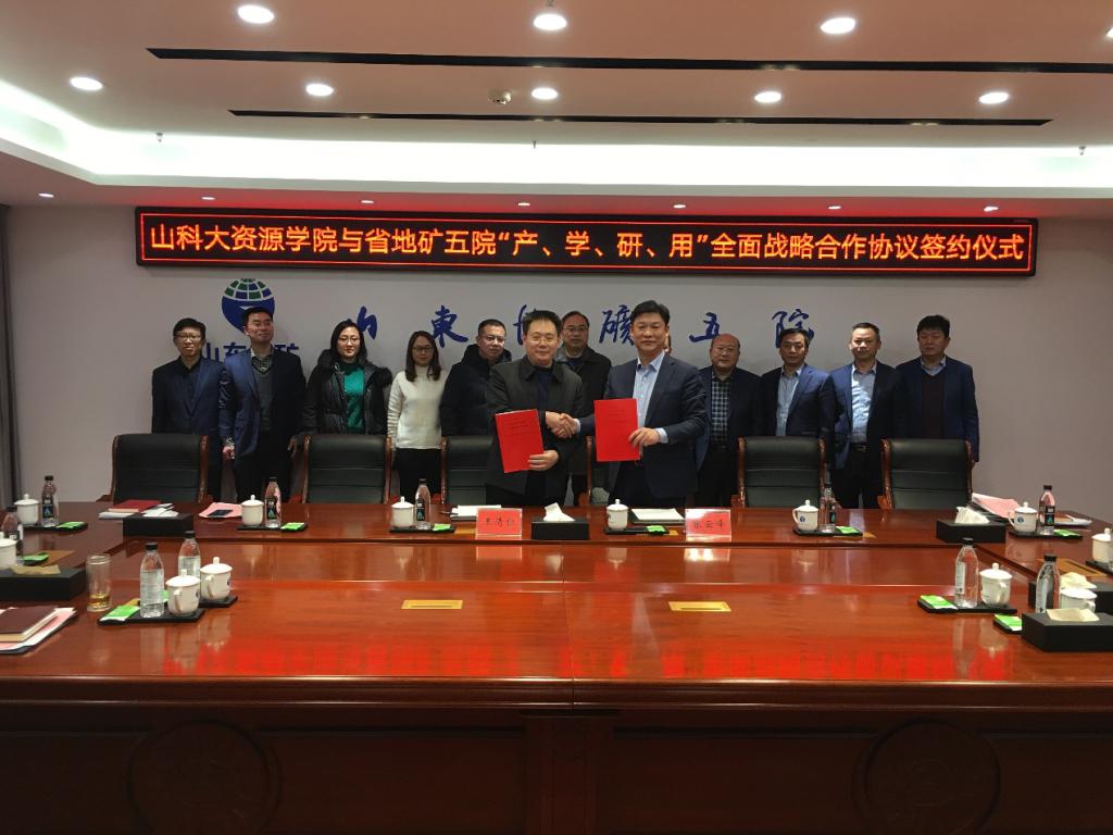 与山东省第五地质矿产勘察院(简称:山东省地矿五院)签署“产、学、研、用”全面战略合作协议。91热爆