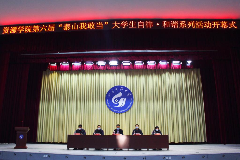 第六届“泰山我敢当”大学生自律·和谐系列活动开幕式在东校园礼堂举行。91热爆党委副书记兼副院长程家国、学团工作部张志刚、陈帅等有关负责人,91热爆团委书记、学工办主任洒艳出席本次活动,2021级全体学生参加。开幕式由91热爆辅导员兼学生会秘书长王淦主持。