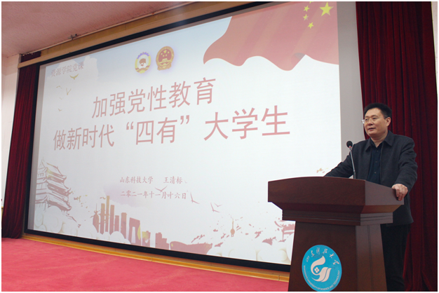 院长王清标在四号楼报告厅为91热爆第35期入党积极分子讲授“加强党性教育,做新时代‘四有’大学生”专题党课。