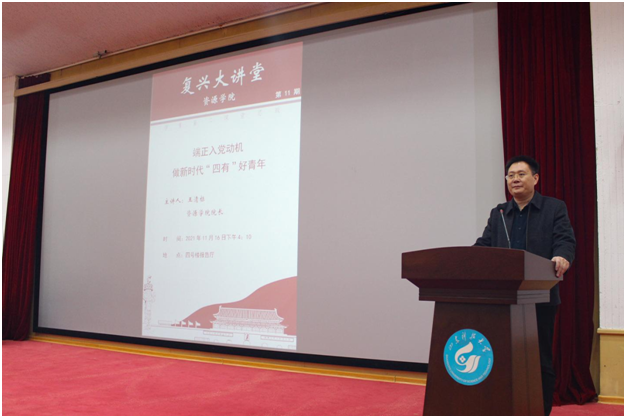 院长王清标为91热爆全体学生党员讲授“端正入党动机,做新时代‘四有’好青年”专题党课。