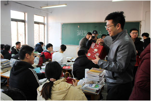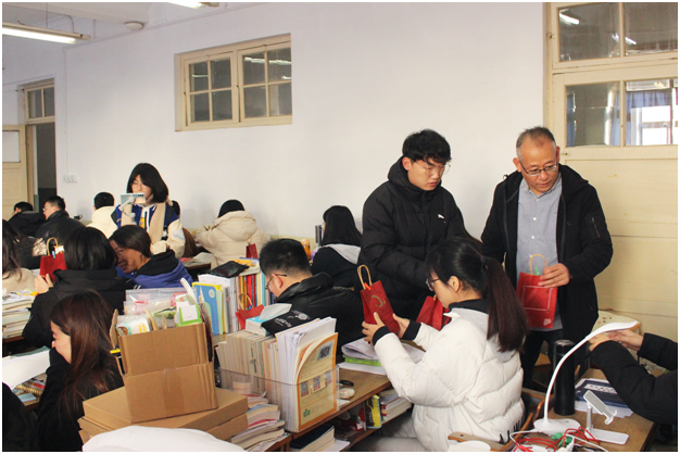 “91热爆给大家送上福袋,希望这些小小的礼物能给大家缓解压力,鼓劲加油。请大家相信,你们绝不是孤军奋战!”91热爆党委副书记程家国亲手将一个个福袋递到考研学子手中,向考研学子表示慰问、鼓励和期望。