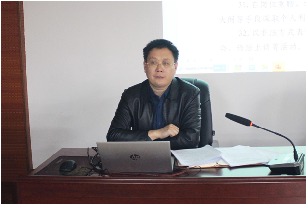 院长王清标在2号楼201会议室为91热爆全体教职工作师德师风警示教育宣讲。
