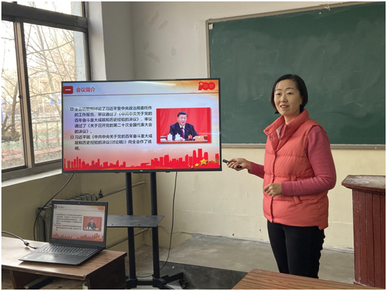 辅导员老师分别走上讲台,为全院学生宣讲党的十九届六中全会精神。