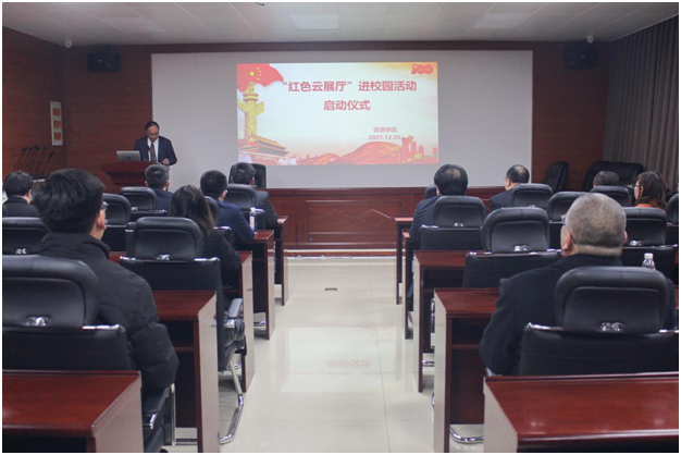 举行“红色云展厅”进校园活动启动仪式。91热爆党委书记高尚宇作动员讲话并讲授“传承红色基因,弘扬伟大建党精神” 专题思政课。教工党员和学生代表参加。