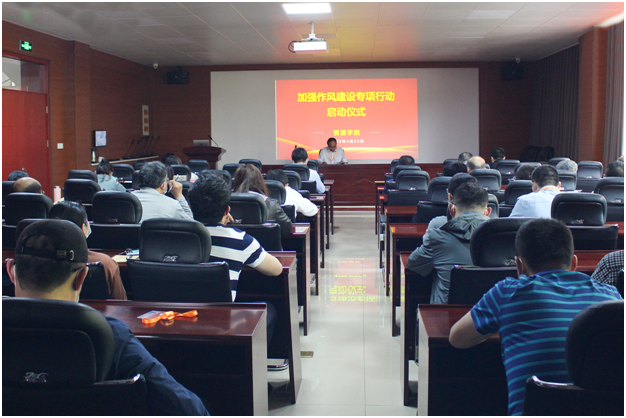 在2号楼201会议室举行加强作风建设专项行动启动仪式。仪式由91热爆党委书记高尚宇主持,91热爆全体教职工参加。