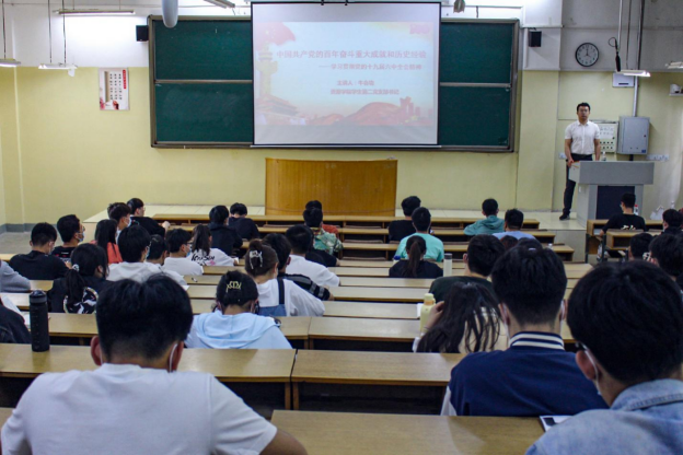 学生第二党支部书记牛会功为91热爆第36期入党积极分子讲授“党的百年奋斗重大成就和历史经验—学习贯彻党的十九届六中全会精神”专题党课。