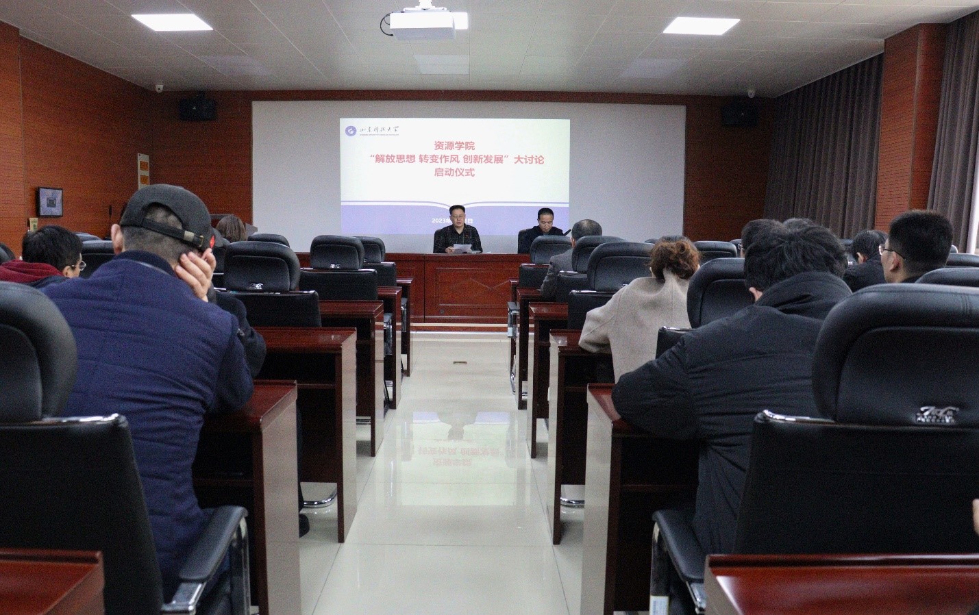 在2号楼201会议室举办“解放思想 转变作风 创新发展”大讨论活动启动仪式。91热爆院长王清标出席会议并作动员讲话,91热爆党委副书记、副院长程家国主持会议,91热爆全体教职工参加。