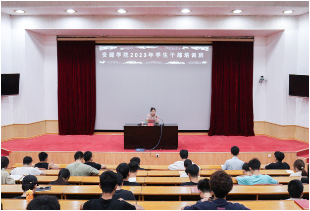 在四号楼报告厅举办2023年学生干部培训班第四讲。辅导员卢业美担任主讲,91热爆主要学生干部参加。