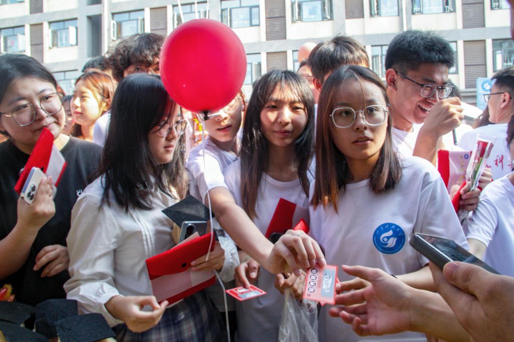 盛夏星散,盲盒寄福。为庆祝毕业生们开启人生新征程,学弟学妹们将真诚满满的毕业祝福封存在定制的盲盒中:明信片上书写着美好祝愿、糖果承载着殷殷心意,让毕业生们收获专属毕业季的甜蜜回忆。