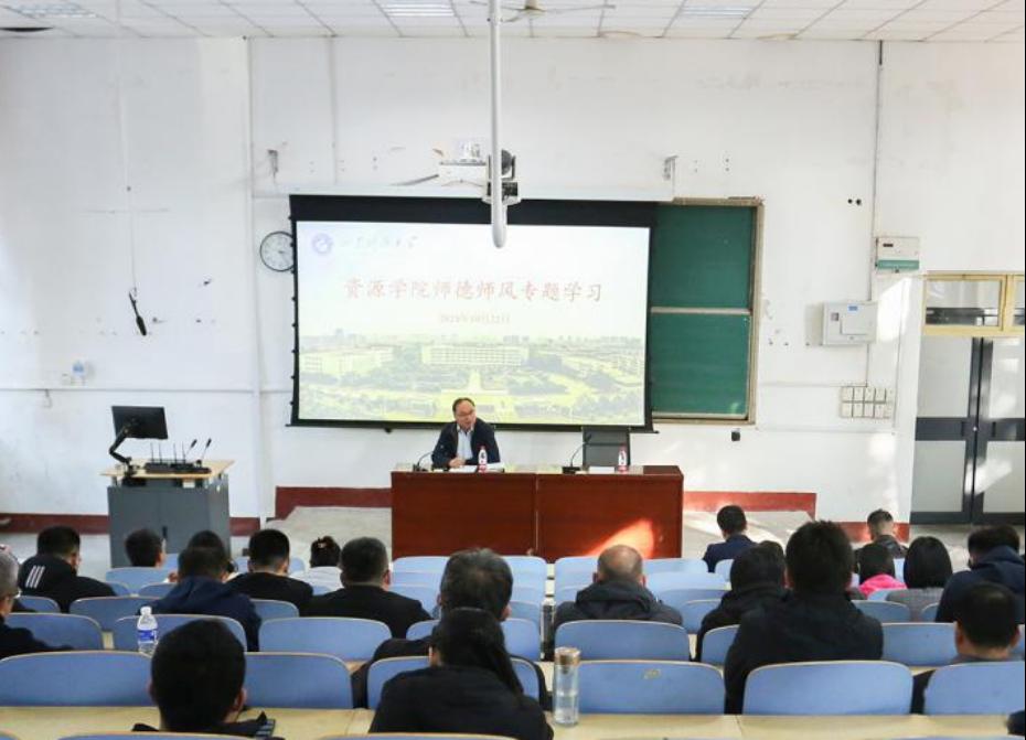 在1A107开展师德师风专题学习。91热爆党委书记高尚宇主持学习并讲话,全体教职工参加。
