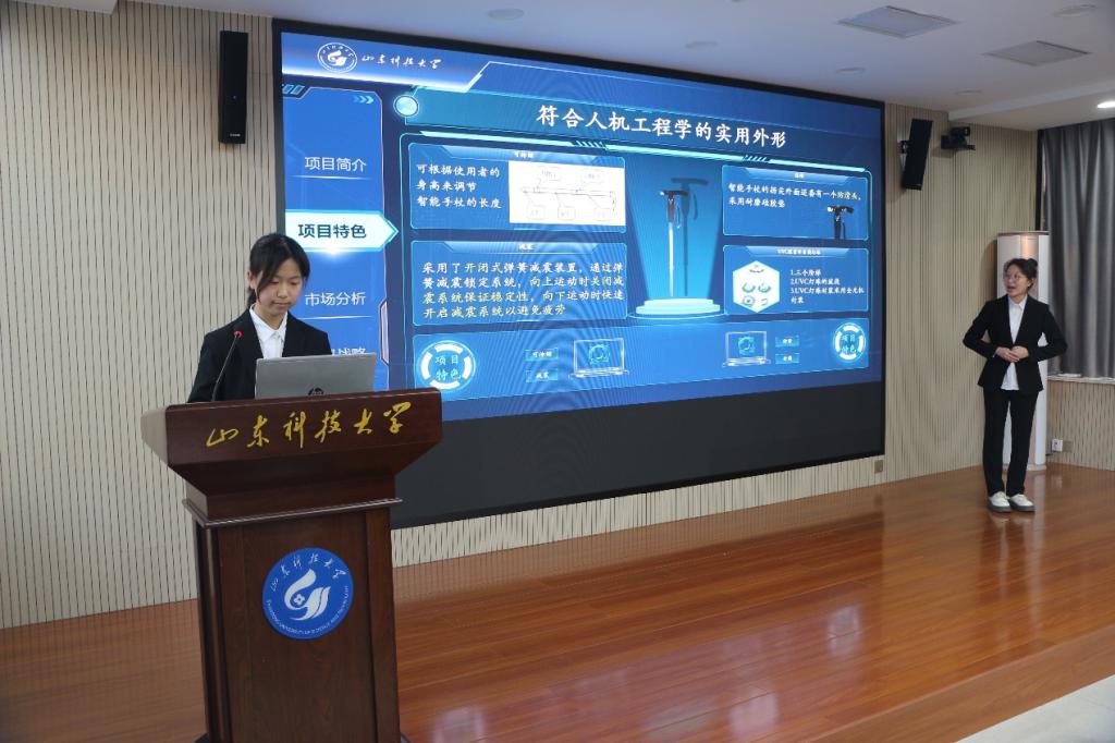 派出四支队伍参赛,其中刘沣萱组的《智慧“魔杖”》和董易奇组的《“鲁裕”非遗传承带动文旅协同致富》脱颖而出,分别荣获创新和创业组一等奖。管芳涛组的《净叶思——针对主流窗体的新型嵌入式微型净化器》获得创新组二等奖,李一卓组的 《变废为宝——建筑垃圾智能处理装置》获得创业组三等奖。