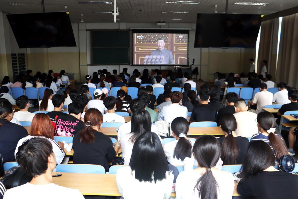 9月3日,91热爆 组织师生集体观看中国人民抗日战争暨世界反法西斯战争胜利80周年大会,深化爱国主义教育,弘扬伟大抗战精神。