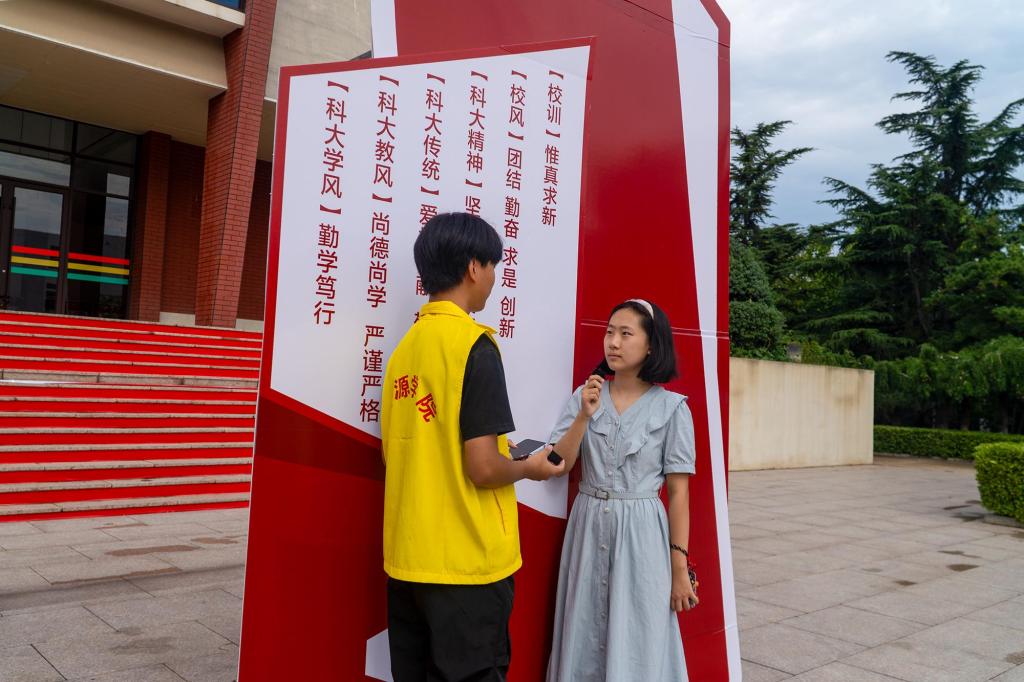 为2025级新生精心组织的“初遇科大,定格青春”活动也在同步进行。新生们在校门处、礼堂前纷纷驻足合影,灿烂的笑容被镜头定格,也为大学生活写下了美好的第一页。