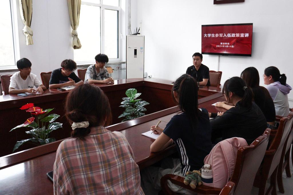 宣讲会重点介绍了参军报名条件、体检标准、政审流程等内容,详细说明了入伍后“直招军士”发展路径以及退役后就业创业、复学升学等优惠政策,并结合往届参军学生的成长案例,鼓励同学们将个人理想融入国防事业。辅导员表示,与会学生干部要进一步强化责任意识,主动当好征兵政策“宣传员”和“联络员”,引导有应征意向的毕业生深刻认识“强军梦”与“青春梦”的紧密联系,抓住政策机遇,积极投身国防事业。交流讨论环节,辅导员细致解答了同学们提出的疑难问题。